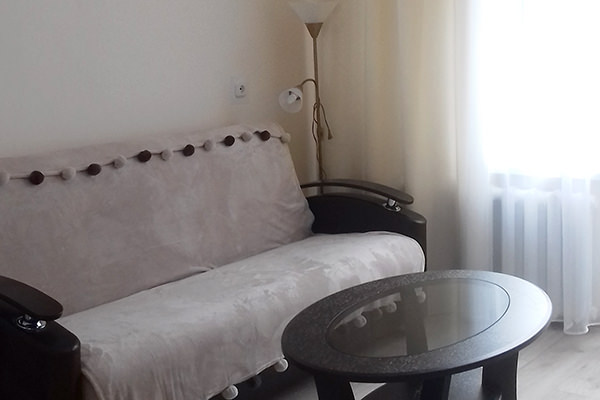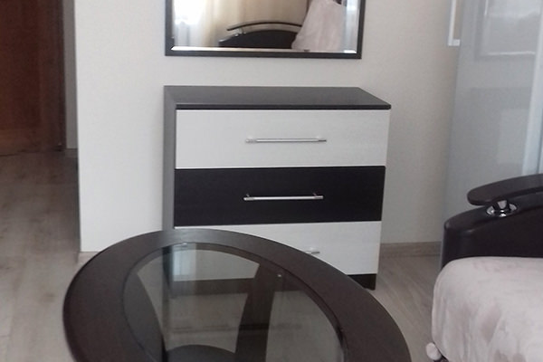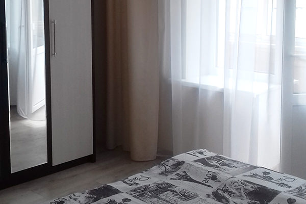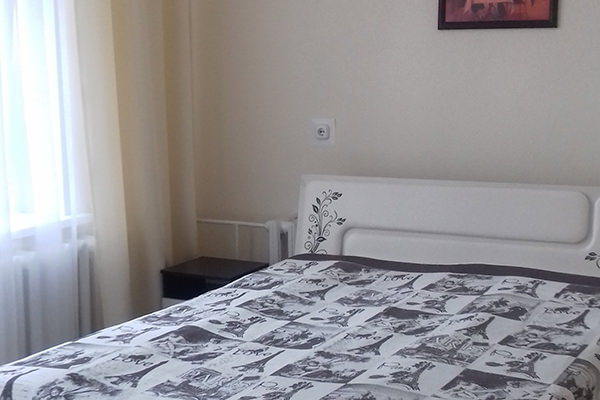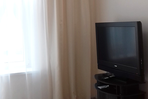 Площадь номера - 46 кв.м. 2 осн. места. 1 доп. место. Балкон. Мебель: вешалка, диван раскладной, зеркало, кровать двуспальная, прикроватные тумбочки, столик журнальный, стулья, тумба под телевизор, шкаф. Оборудование: телевизор ЖК, холодильник, электрочайник. Санузел: с душем, туалетные принадлежности, фен. Сервис: смена полотенец (1 раз в неделю), смена постельного белья (1 раз в неделю), уборка номера (ежедневно).